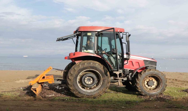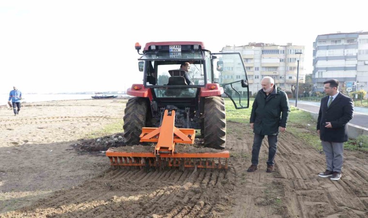 Tamamı hurda malzemelerden, Temizlik İşleri Müdürlüğü personelleri ve Fen İşleri Müdürlüğü kaynak ustalarının ortak çalışmasıyla belediye atölyelerimizde geliştirilerek üretilen traktör arkası kumsal tırmığı, Çiftlikköy sahilinde özellikle olumsuz hava şartları ve fırtına sonrası meydana gelen kirlilik ve yosun birikintilerinin temizlenmesinde kullanılıyor.
