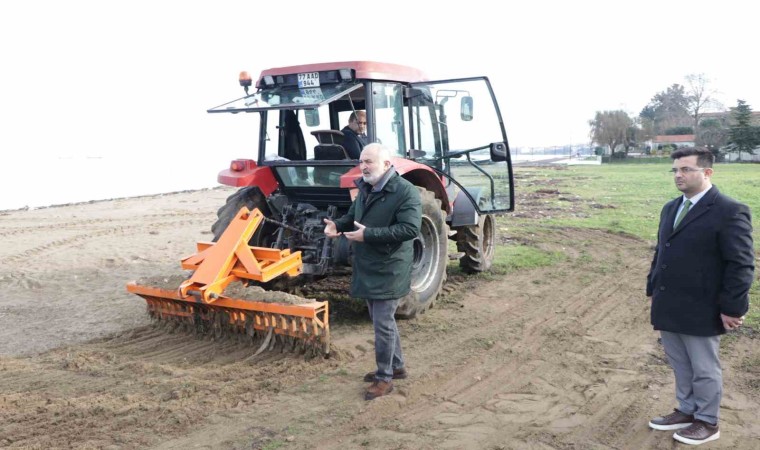 Çiftlikköy Belediye Başkanı Ali Murat Silpagar, belediye ekiplerinin hurda malzemeden ürettikleri kumsal temizlik aparatını yerinde inceledi.