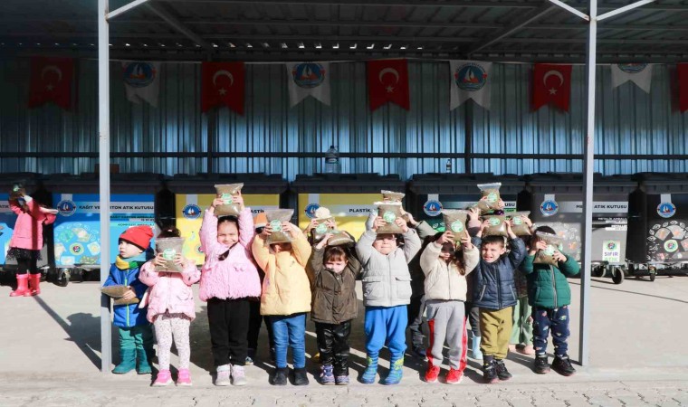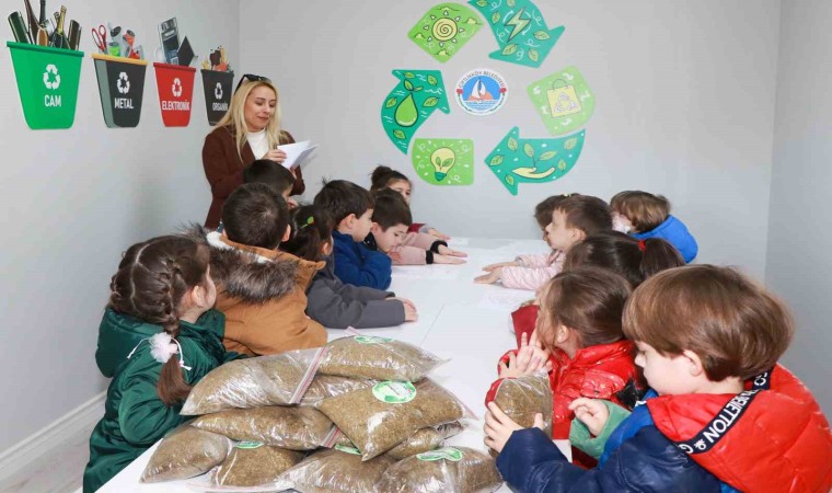 Sıfır Atık Atölyesinde görsel becerilerini arttırmak için boyama etkinliği yapan minikler, daha sonra ‘Maviden Yeşile Sürdürülebilir Bir Geleceğe Projesi’ çerçevesinde kurulmuş olan kompost tesisini de gezerek, deniz yosunları ve organik atıkların nasıl verimli toprağa dönüştürüldüğü hakkında bilgiler aldı. Ardından etkinliğe katılan minik öğrencilere organik toprak hediye edildi.