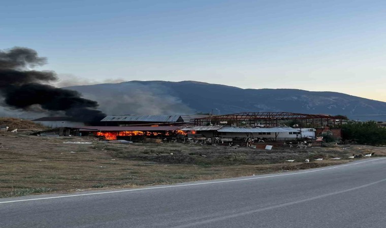 Denizli’de bir çiftlikte çıkan yangında, ahırın yanında bulunan balya halindeki samanlar alev alev yandı. Çiftlikte bulunan çok sayıda hayvan ise zarar görmeden son anda kurtarıldı.