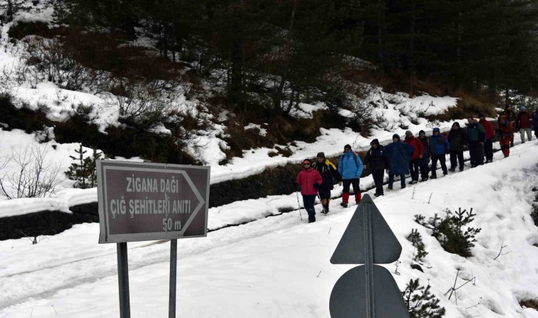 Zigana Dağı geçidinden Gümüşhane Valiliği tarafından yaptırılan Çığ Şehitleri Anıtına kadar yürüyen sporcular anıt önüne geldikten sonra saygı duruşunda bulundu ve İstiklal Marşı’nın okudu.