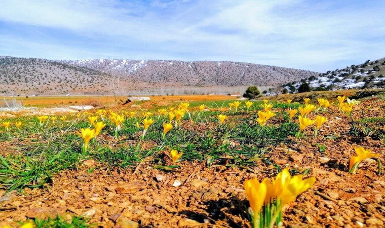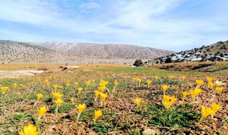 Kahramanmaraş’ta yüksek kesimlerdeki dağ eteklerinde kendiliğinden yetişen çiğdem çiçekleri doğayı süsledi.