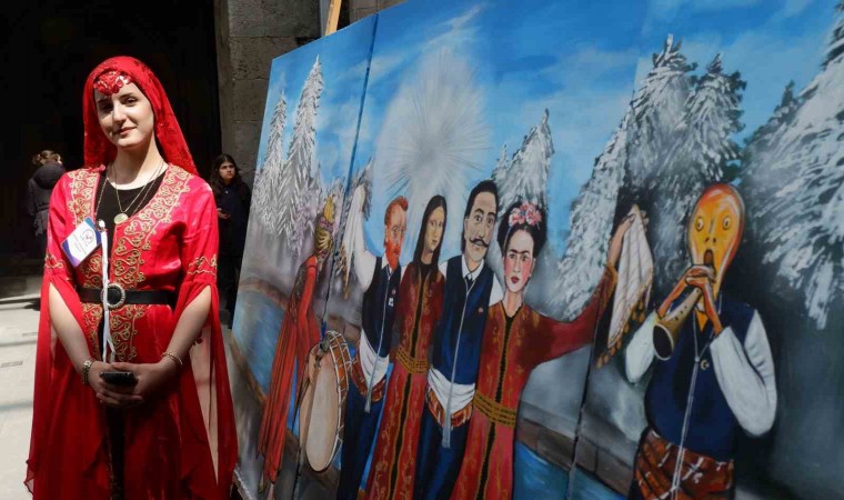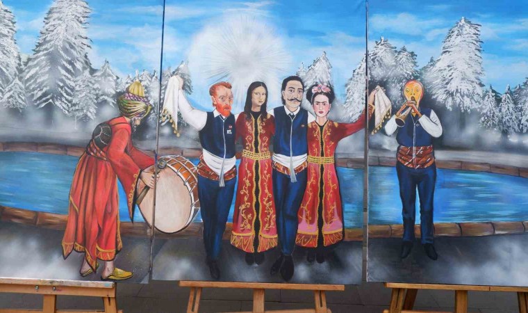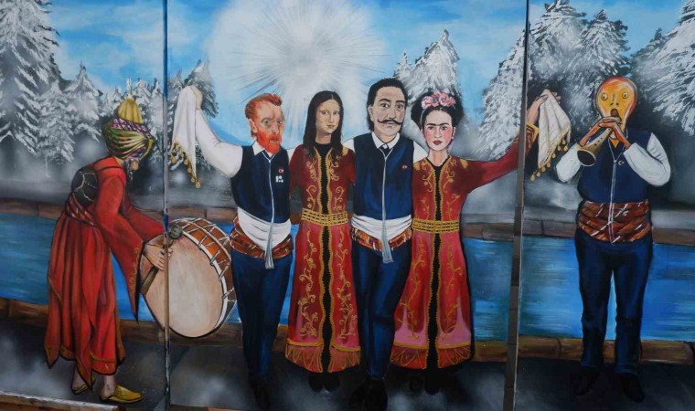 Erzurum’da bir öğretmen ve iki öğrencisi dünyaca ünlü isimleri Erzurum halk oyunu barda buluşturdu, yağlı boya tablosunda bir araya getirdi.