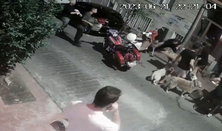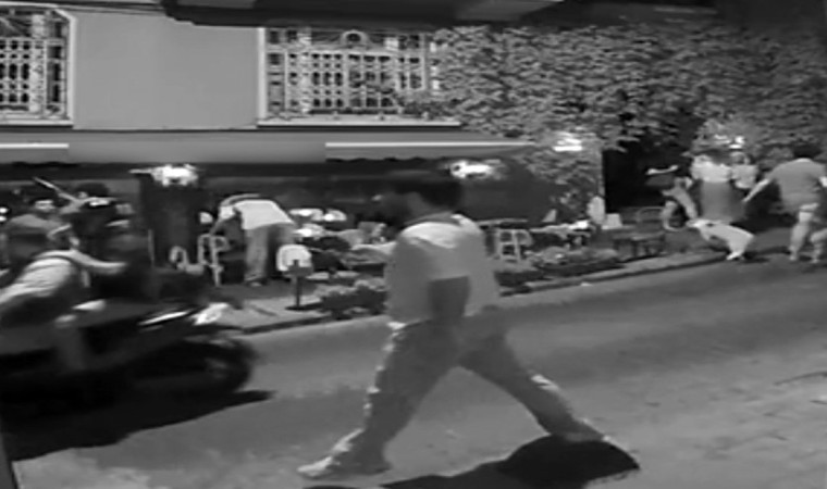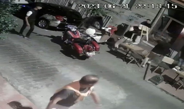 Tarafların birbirine girdiği kavgada sandalye fırlatılan esnaf da eline ayaklı küllük alarak kendini savunmaya çalıştı. Kavgaya karışan taraflar birbirinden ayrıldığı esnada ise sokaktan geçen motosikletli bir şahıs havaya ateş açınca ortalık bir kez daha karıştı. Neye uğradığını şaşıran sokaktakiler etrafa kaçıştı. Yaşananlar ise güvenlik kameralarına anbean yansıdı.