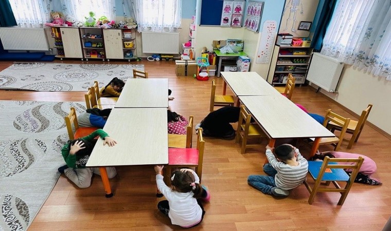 Olası bir afet veya kaza durumunda öğrencilerde afete hazırlık bilinci oluşturmak için etkinlikler uygulandı. Öğrencilere çök-kapan-tutun hareketinin nasıl yapılacağı uygulamalı olarak gösterildi. Ardından depremden sonra binadan tahliye çalışması yapılarak bahçeye çıkılıp çember oluşturularak deprem tahliye tatbikatı tamamlandı.