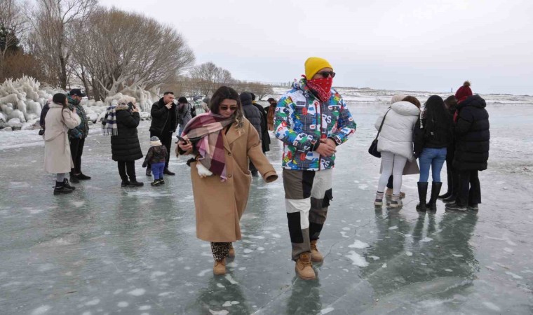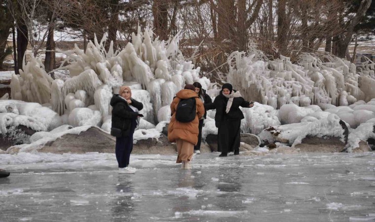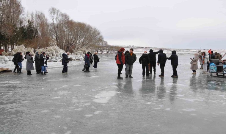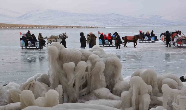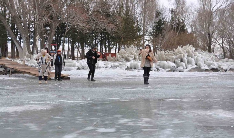 Kayalıklara ve ağaçlara dalgaların vurmasıyla ortaya çıkan buz manzaralı ise vatandaşlardan yoğun ilgi görüyor. Buzların önünde fotoğraf çekilenler, halay çekenler, buzun üzerine oturanlar renkli görüntüler ortaya çıkardı. Yerli ve yabancı turistlerin yoğun ilgi gösterdiği Çıldır Gölü, yeni yılda da vatandaşlarla dolup taşıyor.