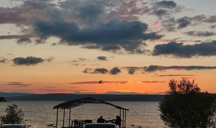 Dünyada gün batımının en güzel izlendiği yerlerden biri olan Çıldır Gölü’ndeki manzara görenleri hayran bırakıyor