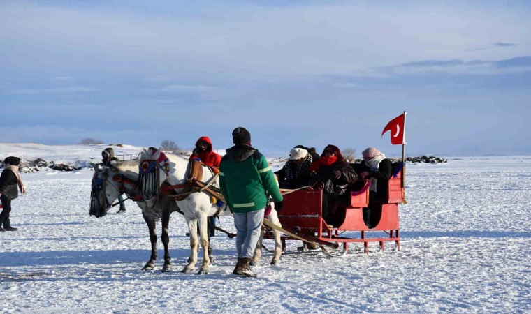 Deniz seviyesinden bin 950 metre yükseklikteki Çıldır Gölü’nün 123 kilometrekarelik alanı tamamen buzla kaplı. Göl üzerinde atlı kızaklarla yapılan tur ise yoğun ilgi görüyor. Yüzeyinin büyük bölümü buz tutan ve Eskimo usulü balık avcılığı ile atlı kızak gezintilerinin yapıldığı Çıldır Gölü, masalsı kış manzaralarıyla ziyaretçilerini kendine hayran bıraktırıyor. Gölde atlı kızağa binen turistler, ziyaretlerini keyifli hale getirerek buz üzerinde halay çekip keyif dolu anlar yaşıyor.