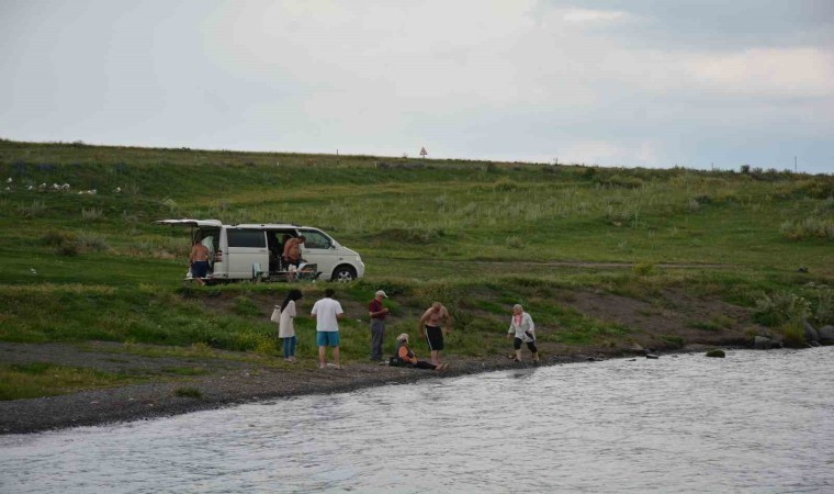 İstanbul’dan ailesiyle birlikte Çıldır Gölü’ne gelen Ensa Özdemir, ’’Kışın yüzeyi tamamen buz tutan Çıldır Gölü’ne gelmek çok güzel. İlk defa geldim ve yaz ayları olmasına rağmen gerçekten çok güzel burası. Burası sakin ve doğası da çok güzel. İlk defa geldim ama bir daha gelmeyi düşünüyorum’’ dedi.