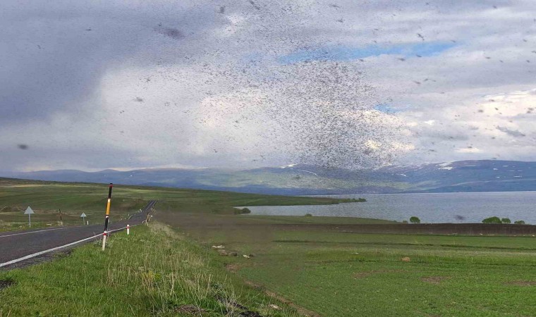 Çıldır Gölü’nde havaların ısınmasıyla birlikte ’göl sineği’ olarak bilinen kronomid sinekler yine ortaya çıktı.