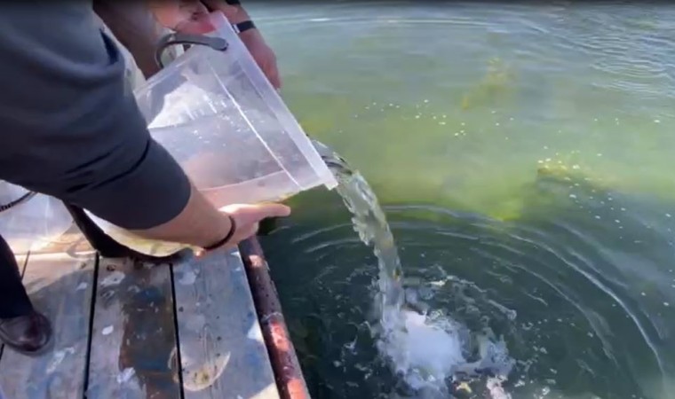 Ardahan’da 150 bin yavru sazan balığı Çıldır gölüne bırakıldı.