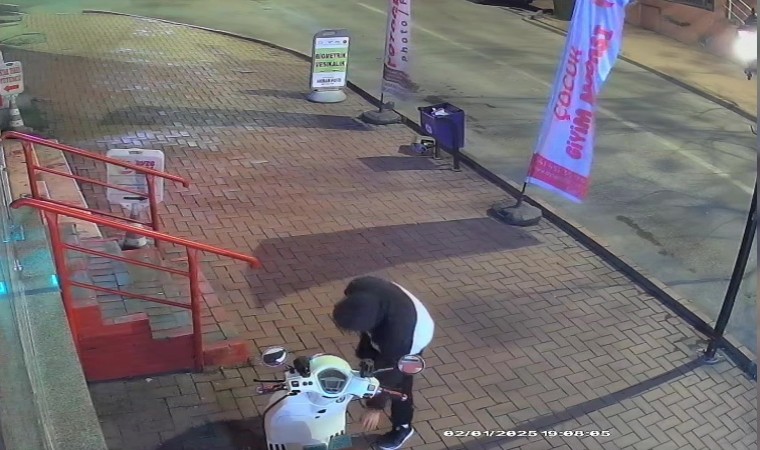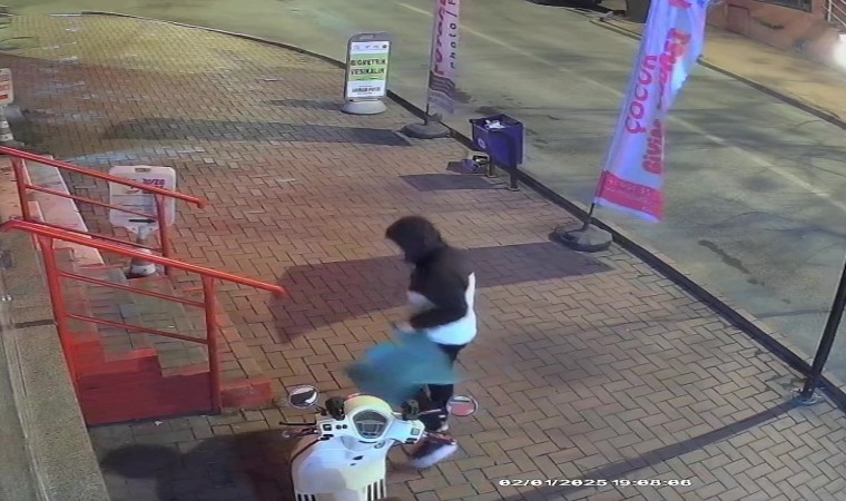 Zonguldak’ın Ereğli ilçesinde bir işyerinin önündeki merdivenlerde oturarak etrafı kolaçan eden hırsızlık zanlısı, 42 dakika boyunca bekledikten sonra motosikletin paspasını çalarak kayıplara karıştı. Olay anı ise güvenlik kamerasına yansıdı.