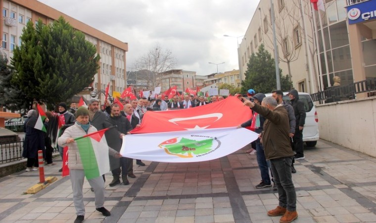 Yürüyüşe katılanlar, "Yasasın Filistin direnişimiz" “Siyonist katiller hesap verecek" gibi sloganlar attı.