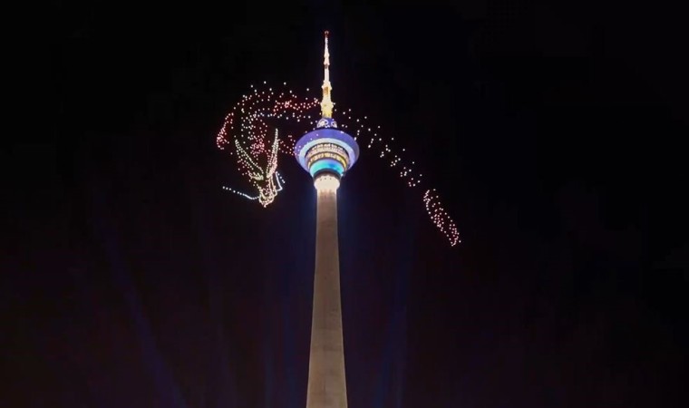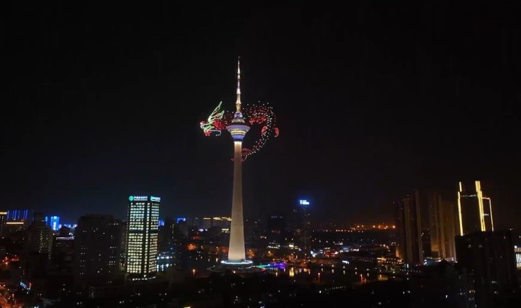 Çin’deki Tianjin Radyo ve Televizyon Kulesi’nin çevresinde yaklaşık bin dron ile “uçan ejderha” gösterisi yapıldı.