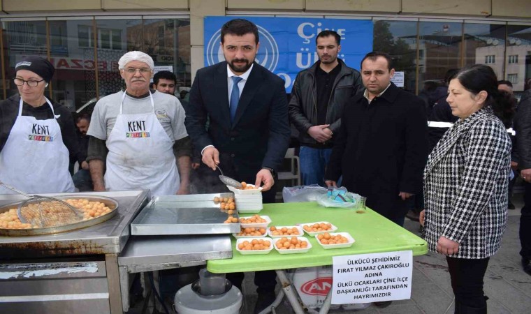 Çine Ülkü Ocakları Başkanı Ali Erdem ve yönetim kurulu üyeleri 2015 yılının Şubat ayında Ege Üniversitesi’nde öğrenciler arasında çıkan olayda saldırıya uğrayan Edebiyat Fakültesi Tarih Bölümü 4’üncü sınıf öğrencisi Şehit Fırat Yılmaz Çakıroğlu’nun vefatının yıl dönümü sebebiyle lokma hayrı düzenledi. Merhum Fırat Yılmaz Çakıroğlu’nun ruhuna okunan duaların ardından lokma dağıtıldı.