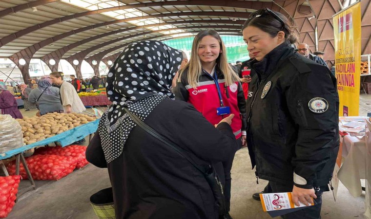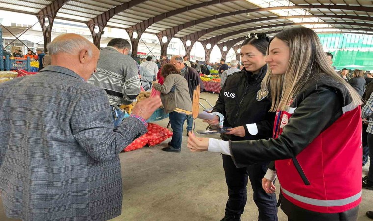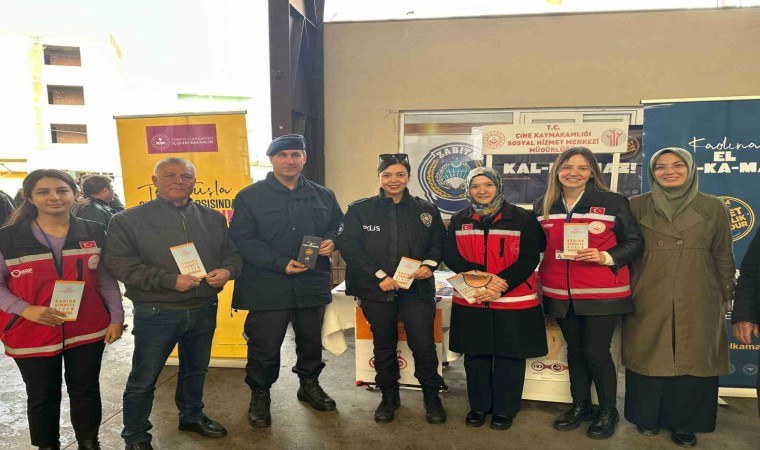 Aydın’ın Çine ilçesinde kadına yönelik şiddete dikkat çekmek için stant açan Çine Sosyal Hizmetler Merkezi Müdürlüğü, pazar yerindeki vatandaşları bilgilendirerek kadına karşı şiddete dikkat çektiler.