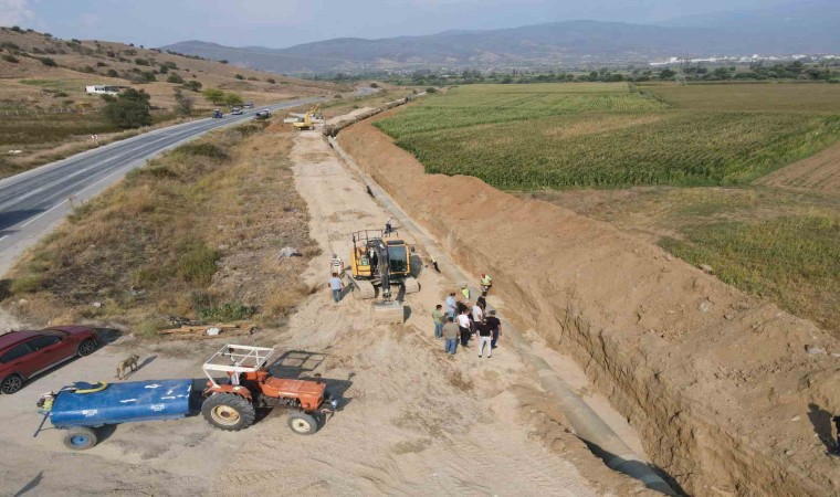 Aydın’ın Çine ilçesinde yapımına başlanan Çine Ovası Sulaması 2. Kısım projesinde çalışmalar aralıksız devam ederken, yer altına indirilen sulama borularının montajı yapılıyor.