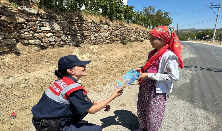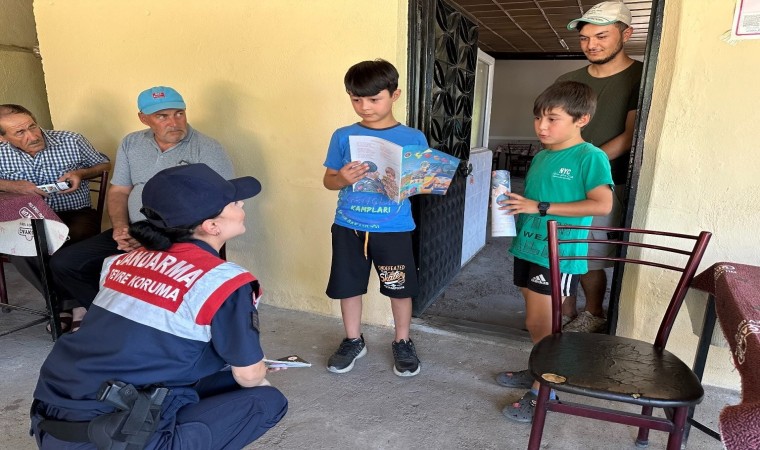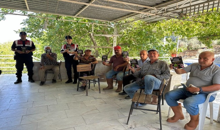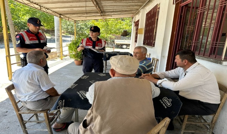 Aydın’ın Çine ilçesinde jandarma ekipleri yangın risklerine karşı vatandaşları bilgilendirerek broşür dağıttı.