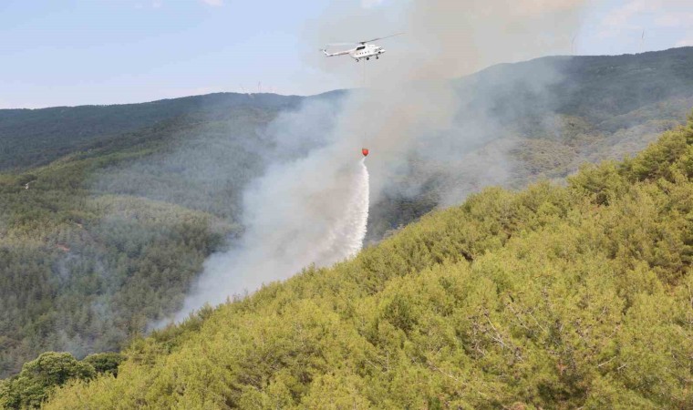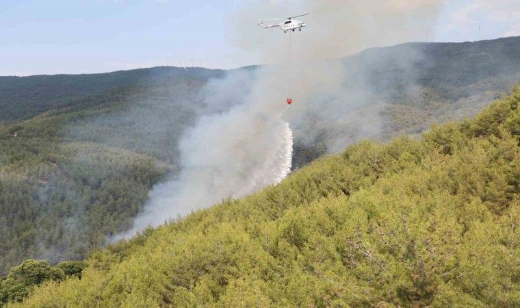 Aydın’ın Çine ilçesinde ormanlık alanda çıkan yangını söndürme çalışmaları havadan ve karadan müdahale ile devam ediyor.
