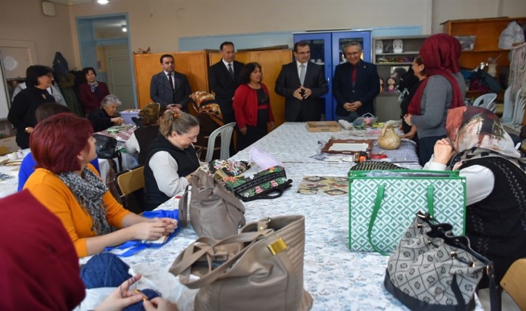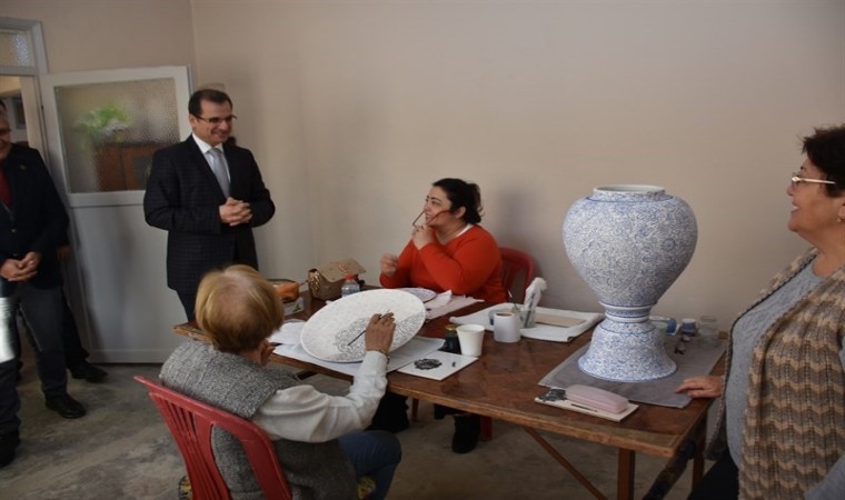 Manisa’nın Salihli ilçesindeki kursiyerler, Şehit Ahmet Özsoy Halk Eğitim Merkezi bünyesinde açılan çini ve giyim kurlarında meslek öğreniyorlar. Salihli Kaymakamı Ali Güldoğan da meslek öğrenen kursiyerleri ziyaret etti.