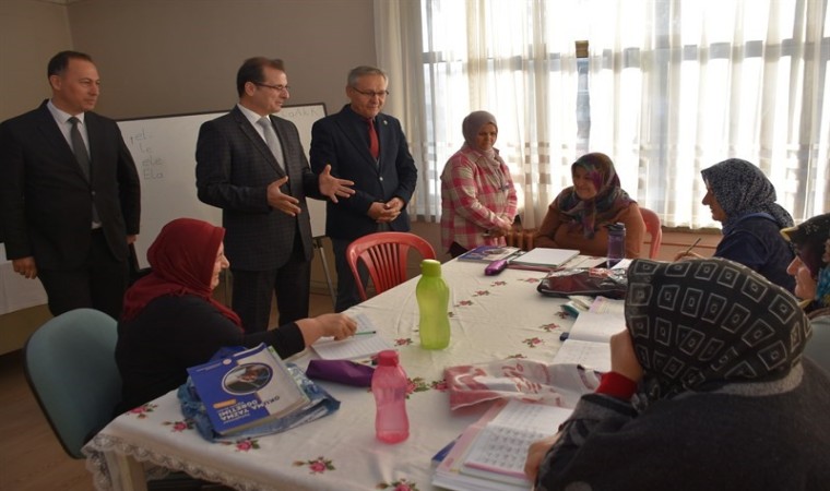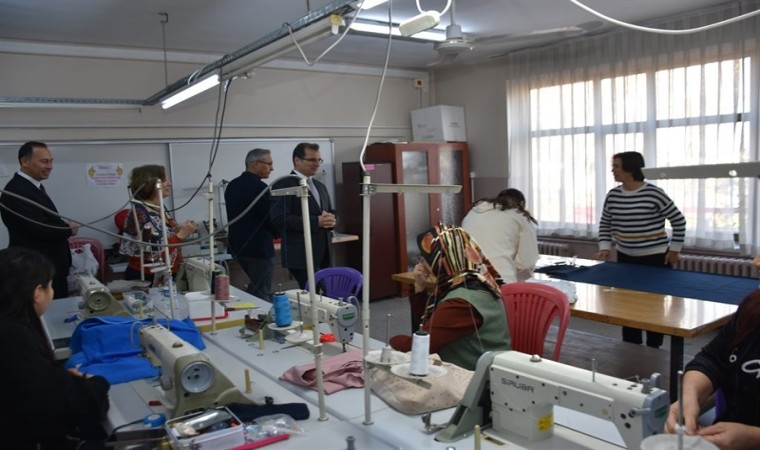 İlçe Milli Eğitim Müdürü Mahmut Yenen yer aldığı ziyarette Kaymakam Güldoğan, kursiyer ve kurs öğreticilerine teşekkür ederek, çalışmalarında başarılar diledi.