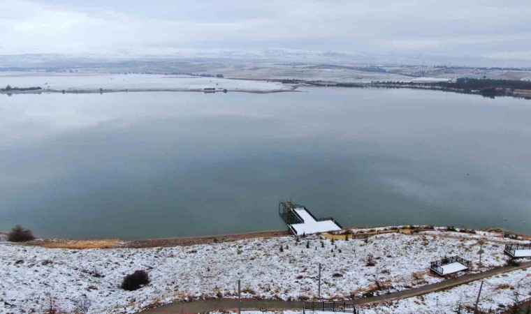 Elazığ’da etkili olan kar yağışı ve soğuk hava, Cip Baraj Gölü’nde farklı bir atmosfer oluşturdu. Şehir merkezine 13 kilometre uzaklıkta yer alan göl, çevresindeki mesire alanıyla birlikte kar yağışı sonrası beyaz örtüyle kaplandı. Yaz aylarında bölge halkı için bir dinlenme alanı olan Cip Baraj Gölü, kış aylarında da ziyaretçilerini ağırlamaya devam ediyor. Kar yağışıyla birlikte bölgenin dron ile yapılan çekimlerinde göl ve çevresindeki alanlar görüntülendi. Çevresinde bulunan seyir terasları ve mesire alanlarıyla her mevsim farklı bir kullanım imkanı sunan Cip Baraj Gölü, kar yağışı sonrası adeta bir kartpostal havası oluşturdu.