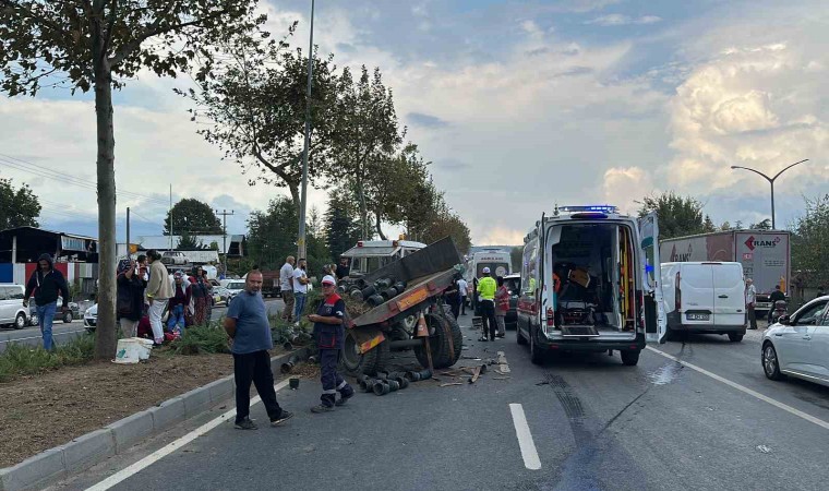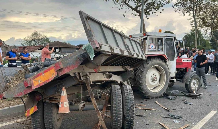 Düzce’de seyir halindeki cipin, belediye işçilerini taşıyan traktöre çarpması neticesinde meydana gelen kazada 1’i ağır 6 kişi yaralandı.