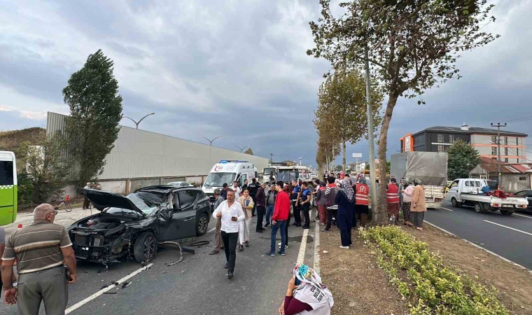 Kaza, Düzce-Zonguldak D-655 Karayolu Yığılca ışıklı kavşak mevkiinde meydana geldi. Edinilen bilgiye göre, Düzce’den Akçakoca istikametine seyir halinde olan S.B. idaresindeki 61 VT 003 plakalı Hyundai marka cip, refüj üzerinde peyzaj çalışmaları için görevlendirilen belediye işçilerinin bulunduğu E.D. hakimiyetindeki 81 AL 390 plakalı traktöre çarptı. Çarpmanın şiddetiyle traktörde bulunan ve refüj üzerinde çalışma yapan 5 belediye işçisi yaralanırken, cip sürücüsü araç içerisinde sıkıştı. İhbar üzerine bölgeye gelen itfaiye ekipleri, araç içerisinde sıkışan S.B.’yi bulunduğu yerden çıkararak sağlık ekiplerine teslim etti. Ağır yaralanan sürücü ve belediye işçileri, çeşitli hastanelere kaldırıldı. Kaza sebebiyle tek şeritten verilen trafik, araçların kaldırılmasının ardından normal seyrine döndü.