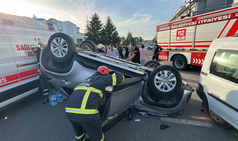 Kaza Bolu Caddesi Düzce Adliyesi önünde meydana geldi. Edinilen bilgilere göre, Soğancı Kavşağı istikametinden şehir merkezi istikametine seyir halinde olan G.H. idaresindeki 81 ACY 375 plakalı Toyota marka cip, Adliye mevkiinde park etmek isteyen M.Ö. idaresindeki 14 ES 943 plakalı opel marka hafif ticari araca çarpmasının ardından ters döndü. Kazayı görenlerin 112 Acil Çağrı Merkezine yaptığı ihbarı üzerine bölgeye sağlık, polis ve itfaiye ekipleri sevk edildi. Kazada G.H.(65) ve O.A.(27) yaralandı. Yarılılar ambulanslarla hastaneye kaldırıldı.