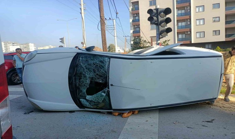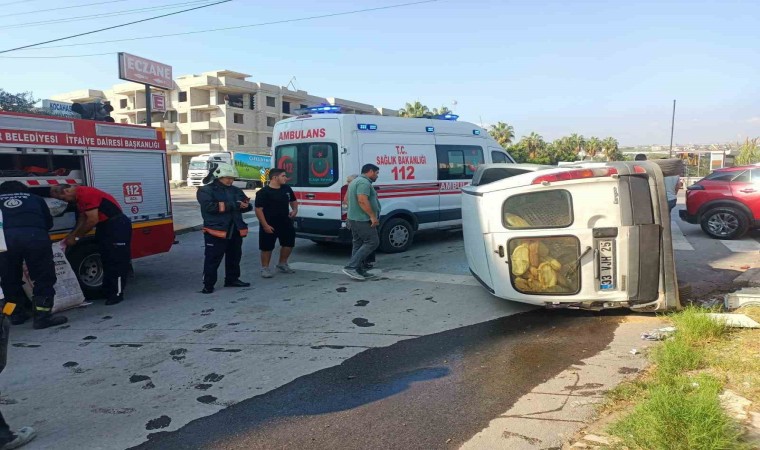 Mersin Erdemli’de hafif ticari araç ile cip çarpıştı. Hafif ticari aracın devrildiği kazada sürücü yaralandı.
