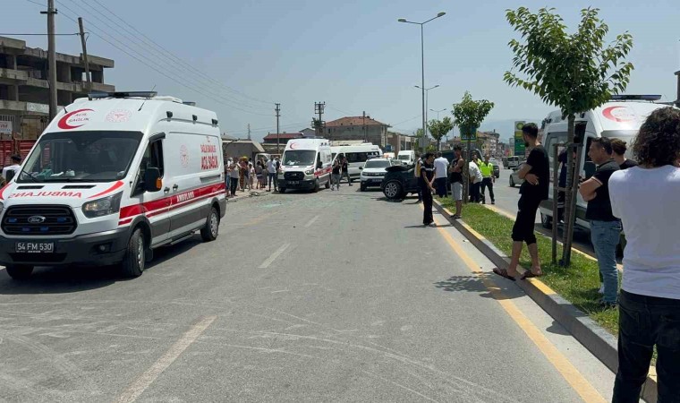 Sakarya Caddesi üzerinde meydana gelen olayda, sürücülerinin isimleri öğrenilemeyen 54 AJJ 724 plakalı Dodge marka cip ile 54 M 0256 plakalı Karsan marka şehir içi toplu taşıma aracı çarpıştı. Meydana gelen kazada 7 kişi yaralanırken durumun haber verilmesi üzerine bölgeye sağlık ve polis ekipleri sevk edildi. Olay yerine gelen sağlık ekipleri yaptıkları ilk müdahale sonrasında yaralıları hastaneye sevk etti. Kaza sebebiyle kontrollü olarak tek şeritten sağlanan trafik, araçların kaldırılması sonrasında normal seyrine döndü. Kazaya ilişkin inceleme başlatıldı.
