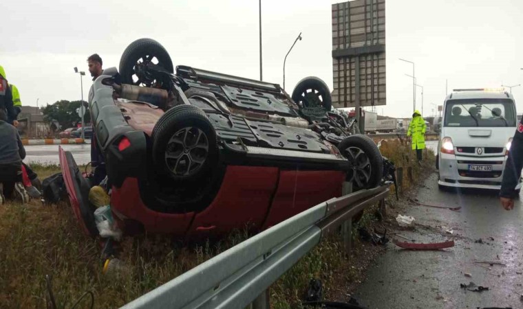 Anadolu Otoyolu’nun Bolu geçişinde dinlenme tesisinde ciple çarpışan otomobil bariyerlere çarpıp takla attı. Meydana gelen kazada 1 kişi yaralandı.