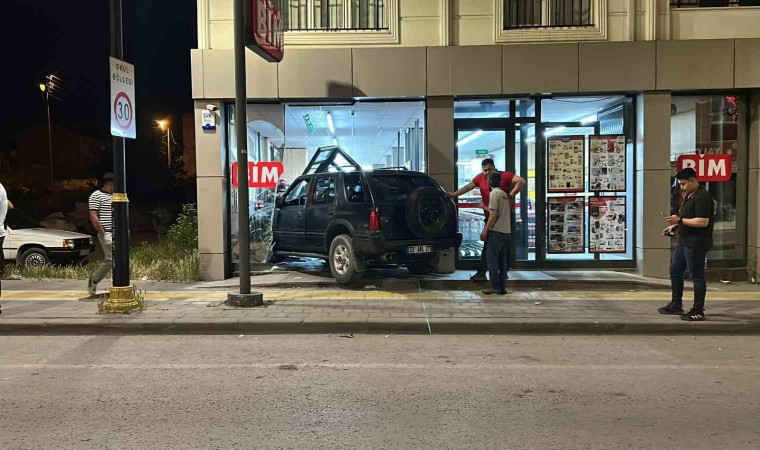 Sivas’ta sürücüsünün direksiyon hakimiyetini kaybettiği cip, marketin vitrininden içeri girdi.
