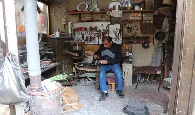 Siirt’te 19 yaşında çırak olarak girdiği dükkanı devralan Nusret Kılıçvuran, 3 metrekarelik dükkanda 40 yıldır teneke ve soba yapıyor.