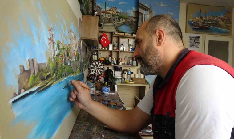 Osmaniye’deki depremde hayatını kaybeden ablası ve eniştesinin öğretmen olduğunu belirten Yıldırım, “Trabzon’un tarihi ve duvar çizimleri yapıyorum. Mesleğime 1993 yılında başladım. İlk olarak cami nakkaşlığı yaptım. Tahsil durumum lise terk, bu meslekte kendi kendimi geliştirdim. Daha sonra bakanlık projeleri, Trabzon’un tarihi çizimlerini yaptık. Onların gelirleriyle beraber kütüphaneler oluşturuyoruz ve hala devam ediyoruz. 6 Şubat depreminde kaybettiğim ablam ve eniştem için Arsin Cumhuriyet İlköğretim okuluna bir kütüphane yaptık. Şimdi Gölçayır İlköğretim Okuluna bir kütüphane yapıyoruz. Dolayısıyla gelen gelirleri oralara açıkçası yarınlara aktarıyoruz. Kahramanmaraş merkezli Osmaniye’de meydana gelen depremdi maalesef ablam ve eniştem vefat ettiler. İkisi de öğretmendi. Dedik ki hem isimleri yaşasın hem eğitimleri bir yandan devam etsin. Ganita çizimlerinden elde ettiğimiz gelirleri oraya harcadık. O bizde alışkanlık haline geldi. Bu çizimleri ortaya çıkardık, sağ olsun kurum ve kuruluşlar bize destek vermeye devam ediyorlar Valilik, Belediyeler” dedi.