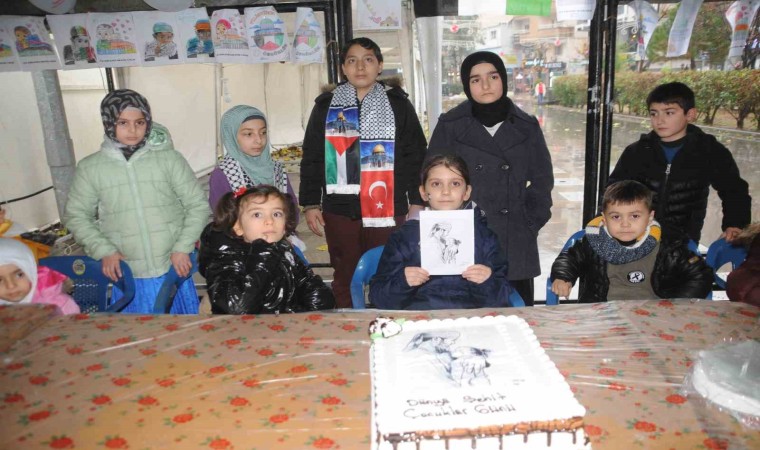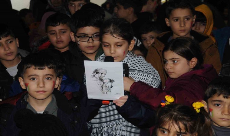 Şehri Nuh Platformu tarafından Sanat Sokağı’nda kurulan Filistin’e Destek ve Dayanışma Çadırı’nda "23 Aralık Dünya Şehit Çocuklar Günü" programı düzenlendi. Etkinlikte bir araya gelen çocuklar adına açıklama yapan Beyza Çatı, "İsrail tarafından şehit edilen küçük bir kız çocuğu vardı. Adı Reem. Dedesinin kuzusu Reem. Dedesi ile kucaklaşmaları, aralarındaki sevgi seli, kızın tatlılığı, masumiyeti, zeytin gözlerindeki ışıltı, gülüşündeki mutluluk hepimizi etkilemiştir. Dedesi ile aynı gün doğum gününü kutlayan ancak İsrail tarafından şehit edilen Reem, maalesef aramızda olamayacak. Ayrıca, meydanlarda 23 Aralık günü Reem’in doğum gününü ve Filistinli şehit çocuklarımızı hep birlikte analım" dedi.