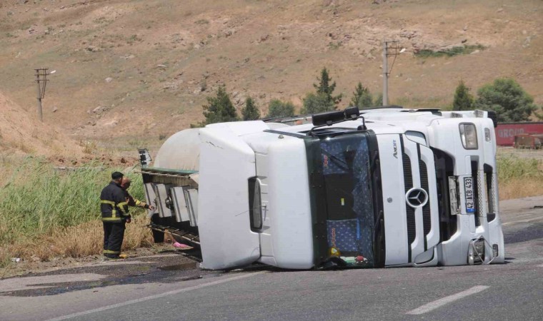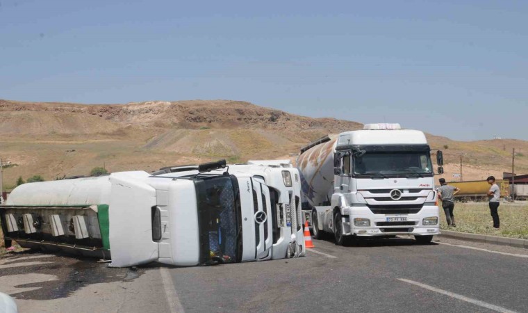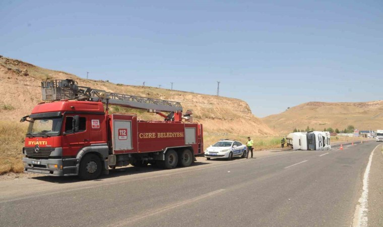 Alınan bilgilere göre, Cizre-Nusaybin karayolunun 10. kilometresinde Kuzey Irak’tan yüklediği benzini Mersin’e götürmek için yola çıkan 42 ACB 433 plakalı tır, sürücüsünün direksiyon hakimiyetini kaybetmesi sonucu devrildi.