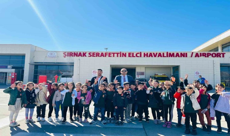 Cizre Vatan İlkokulu öğrencileri, Şırnak Şerafettin Elçi Havalimanında düzenlenen meslek tanıtımı etkinliği kapsamında havalimanını gezdi. Öğrenciler, uçağın iniş ve kalkışını izledi ve uçakları yakından görmenin mutluluğunu yaşadı.