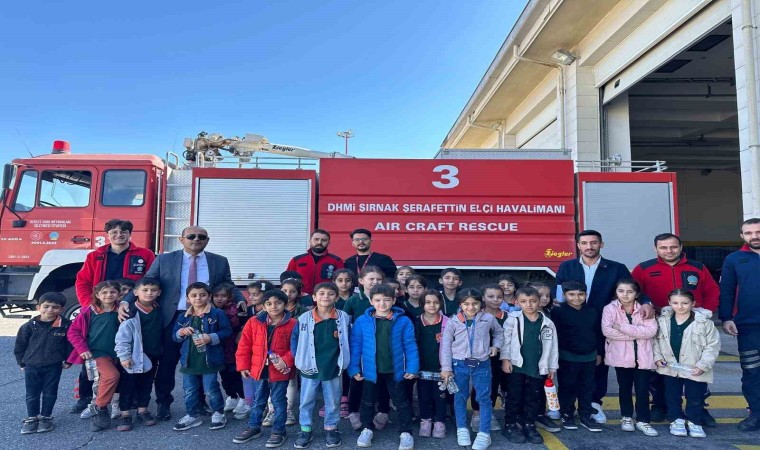 Şırnak Havalimanı Müdürü Şükrü Benek tarafından karşılanan öğrencilere; terminal binasında uçuşlarla ilgili yapılan rutin işlemler, yolcu kolaylıkları, yolcu uğurlama ve karşılama ile ilgili yapılan işlemeler gösterildi. Öğrenciler daha sonra hava kurtarma ve yangın ile mücadelede binasını gezip itfaiye araçlarından çevreye su fışkırttı.