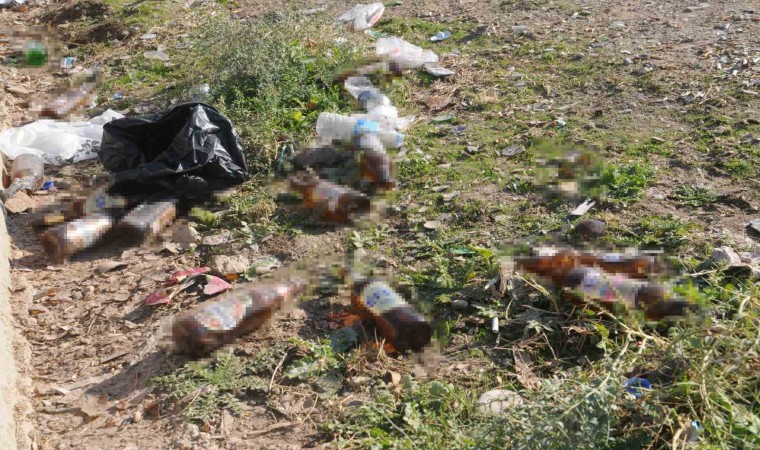 Şırnak’ın Cizre ilçesinde kimliği belirsiz kişi ya da kişilerce atılan alkol şişeleri, çevre kirliliğine neden oldu.