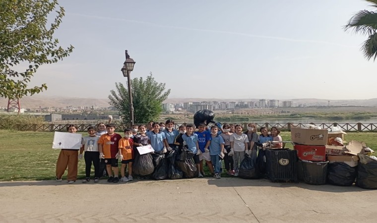 Şırnak’ın Cizre ilçesinde ortaokul öğrenciler, öğretmenleri eşliğinde parkta temizlik yaptı.