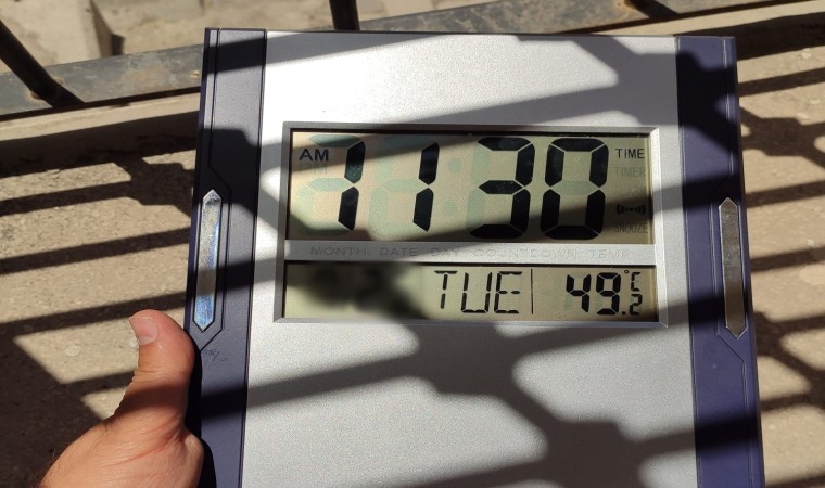 Sıcaklık nedeniyle klimaların dahi çalışmadığını belirten Emrah Kömür, "Şu an termometrelerimiz gölgede 49,7 dereceyi gösteriyor. Güneşte bu sıcaklık daha da yükseliyor. Mümkün oldukça dışarı çıkmamaya özen gösteriyoruz. Bunu söylediğimiz zamanda da sıcaklıktan dolayı klimalar randıman vermiyor, çalışmıyorlar. Nasıl olacak bilmiyoruz. Allah sonumuzu hayır etsin inşallah" diye konuştu.