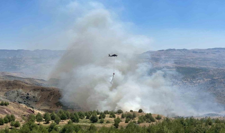 Adıyaman’ın Gerger ilçesinde ormanlık alanda devam eden yangına havadan 2 helikopter ile müdahale ediliyor.