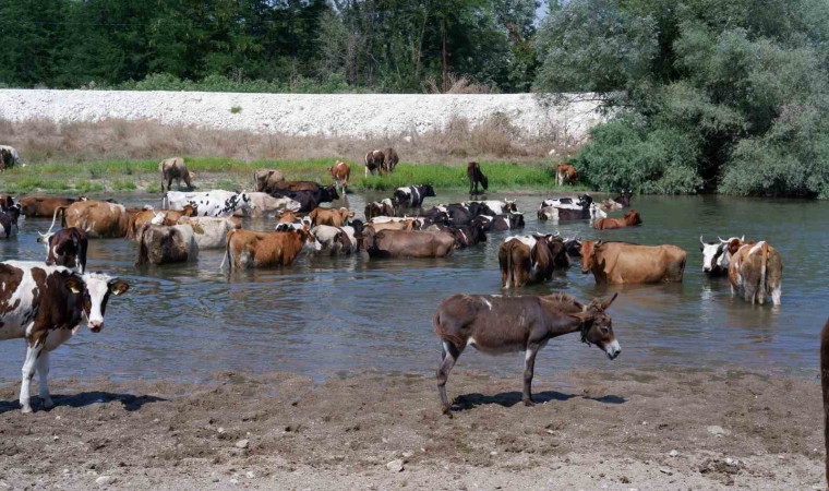 "Eyyam-ı Bahur" sıcak hava dalgasının sürdüğü Edirne’de, büyükbaş ve küçükbaş hayvan sürülerini meralarda otlatan çobanlar, sıcaklığın arttığı saatlerde sürüleri Tunca Nehri’ne getiriyor. Nehirde serinleyen hayvanlar, daha sonra çobanlar tarafından ağaçların gölgelerine getiriyor. Ağaçların gölgesinde dinlendirilen hayvanlar, akşama kadar otlatıldıktan sonra köylere geri götürülüyor.