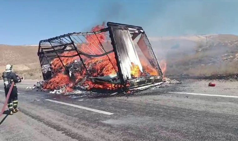 Edinilen bilgilere göre, yangın, Sivas’ın Yıldızeli ilçesi Bedirli köyü yakınlarında meydana geldi. Seyir halindeki tırın çocuk bezi ve ıslak mendil yüklü dorsesi, bilinmeyen sebeple bir anda alev aldı. Durumu fark eden sürücü, tırı dorseden ayırarak canını son anda kurtardı. Tırın dorsesi ise alev alev yandı. Çevredekilerin ihbarı üzerine olay yerine jandarma ve itfaiye ekibi sevk edildi. Alevler Sivas Belediyesi İtfaiye ekiplerinin müdahalesiyle söndürüldü.