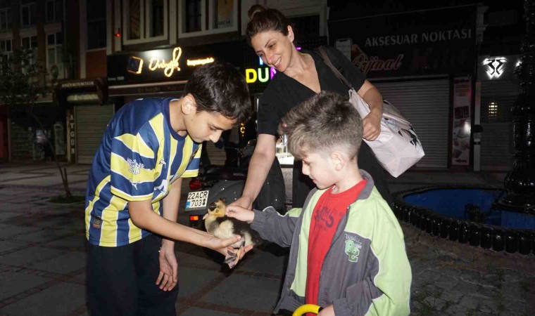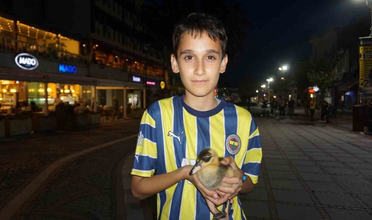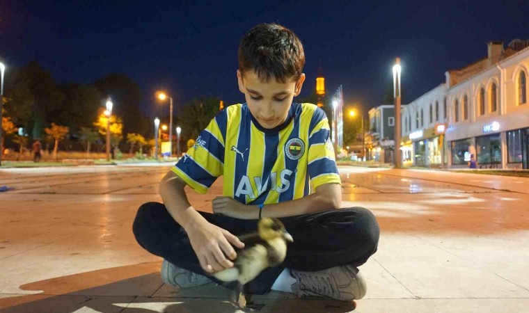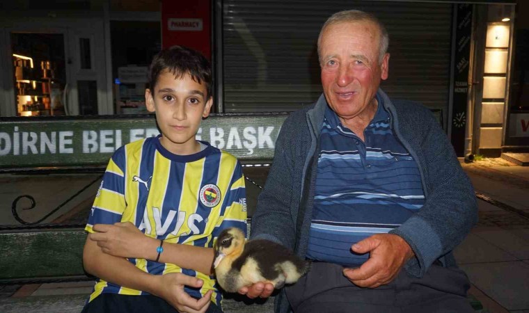Edirne’de ağabeyinin arkadaşının kutu içinde getirdiği yavru ördeği sahiplenen 14 yaşındaki Emir Taha Samanoğlu, ona gözü gibi bakıyor ve her gün arkadaşı ile gezer gibi gezdirmeye çıkarıyor.