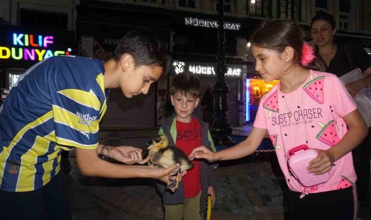 Edirne’nin en işlek noktalarından birisi olan Saraçlar Caddesi’nde yavru ördek ’Reis’ ile birlikte dolaşan Samanoğlu’nu görenler gözlerine inanamıyor. Oyuncak sanan da oluyor, yanına gelip seven de fotoğraf çekilmek isteyen de oynuyor.