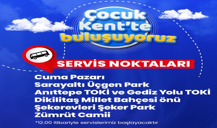 Kalkış noktalarında saat 12.00’de hazır olacak servisler kapasitelerini doldurduklarında Çocuk Kent’e gitmek için hareket edecekler.