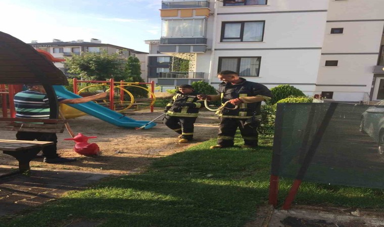 Afyonkarahisar’da bir sitenin bahçesindeki çocuk oyun alanında görülen yılan büyük paniğe neden oldu.