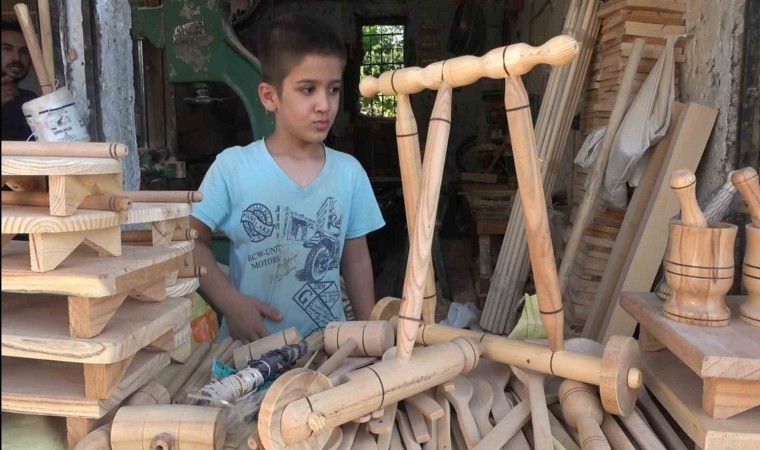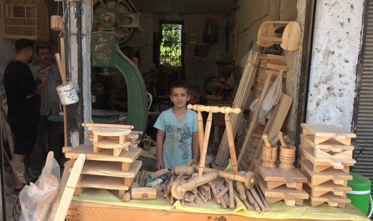 Eskisi gibi artık yürütece fazla rağbet olmadığı için sipariş usulü çalıştıklarını söyleyen Ali İğneci, "Depremde kötü etkilendik, iş yerimiz hasar gördü. Kiracıydık ama iş yeri bulamadık, depremin etkisiyle her yeri yıkıldı Osmaniye’de bundan dolayı yani bu küçük gördüğünüz yeri tuttuk. Burayı da bulmasam artık bırakma seviyesine gelmiştim. Genelde hamur işleri, oklava, merdane yapıyorum. Yürüteç, yürümeye yakın çocuklara kolaylık çivi, vernik, kimyasal yok, çocuklara zarar vermeyecek şekilde. Bu ürünleri de talep az, nadir zaten talep olursa yapıyorum. Sürekli ürettiğim bir ürün değil siparişe göre yapıyorum. Teknolojiye gidiyor çoğu kişi bu niye vernikli değil niye parlamıyor falan diyorlar. Ben bu ürünlere vernik atın deseniz bile atmam diyorum, çocuğun ağzı değer eli değer kimyasal kesinlikle ben onlara karşıyım. Hiç almazsanız dahi ben vernik atmam, çivi atmam zararlıdır çünkü bu sıcaklıkta erir ve kimyasal olduğu için hastalık olur. Onun için vernikli ürün ne bulundururum ne satarım" dedi.